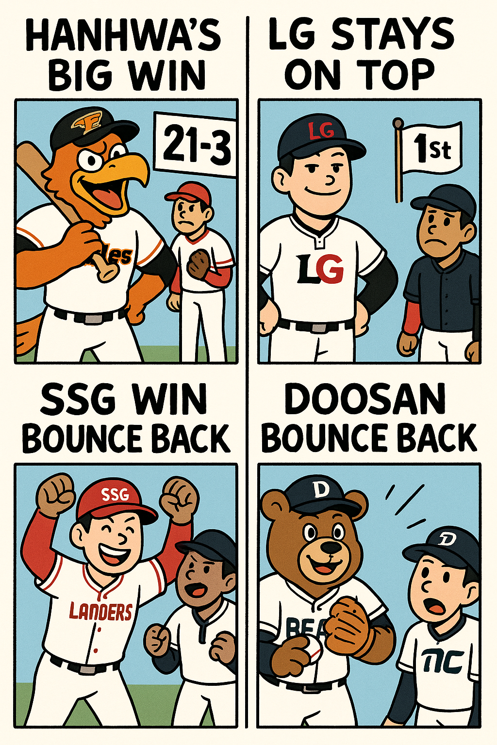 - LG 트윈스의 꾸준한 1위 방어: 수요일‧목요일 연승으로 중위권 격차 유지